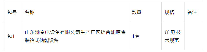 山東電力設(shè)備公司“山東輸變電設(shè)備有限公司生產(chǎn)廠區(qū)綜合能源集裝箱式儲(chǔ)能設(shè)備”詢價(jià)采購公告