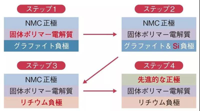 根據(jù)AAB3 2019上A123系統(tǒng)的Brian Sisk先生演講,首先,使用現(xiàn)有LIB電池中的NMC正極和石墨負極進行商業(yè)化。之后,依次用高級材料代替負極和正極。