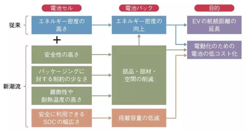 以這種方式,不同于提升電池的能量密度,而是利用一些其他的特性來提升電池Pack的性能,這種方法在汽車電池領(lǐng)域開始逐漸被關(guān)注。其中豐田汽車就被視為這一領(lǐng)域的先鋒。該公司正在開發(fā)的全固態(tài)電池目標在2020年代上半期實現(xiàn)商業(yè)化推廣,其優(yōu)勢之一是全固態(tài)電池的阻燃性和耐熱性等。