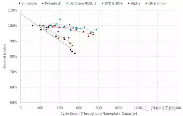 500次實(shí)驗(yàn):SimpliPhi的鋰電池在600次已經(jīng)進(jìn)入安全界限,德國(guó)的GNB電芯也有點(diǎn)問(wèn)題。