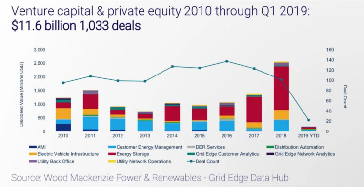 2018年全球儲(chǔ)能市場(chǎng)投資比往年顯著增加,但2019年第一季度的投資有所減緩。然而,2010-2019年期間獲得116億美元投資并不令人意外。還需要注意的是,儲(chǔ)能系統(tǒng)在投資中發(fā)揮了越來(lái)越重要的作用。