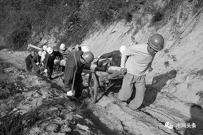 ?在河南山區(qū),當年供電員工用架子車拉著線桿進山。