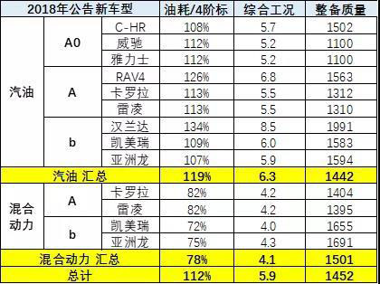 以豐田為例的油耗表現(xiàn)特別突出,其2018年的新品油耗應該順利到當年標準,實際估計超越企業(yè)平均目標油耗的僅有RAV4和漢蘭達等中大型SUV。