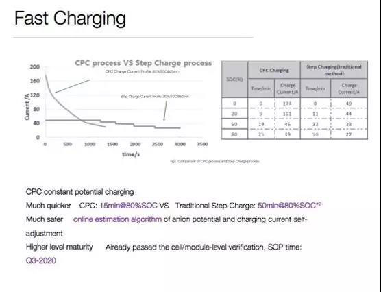 值得注意的是,在2018年寧德電動汽車大功率充電試點專題研討會,寧德時代就展示了采用“超級鐵鋰+高能量密度快充石墨”體系的EnerSpeedy超級鐵鋰電池的充電過程。該產(chǎn)品是60Ah的超級鐵鋰電池,可進行5C充電,演示過程用時7分12秒,就完成了20%至80%的充電,而20%到100%充電,僅耗時13分8秒。