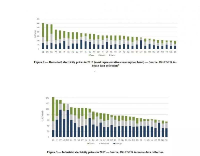 歐盟數(shù)據(jù)顯示,2017年德國居民電價高達0.3歐元/kWh,工業(yè)電價超過0.14歐元/kWh,創(chuàng)下歐盟最高電價記錄,而歐盟的平均電價水平是居民電價略低于0.2歐元/kWh,工業(yè)電價略低于0.1歐元/kWh。德意志通訊社在德國商報中發(fā)布消息稱,經(jīng)濟和能源部長將與國家氣候內閣協(xié)商,降低國內電價。