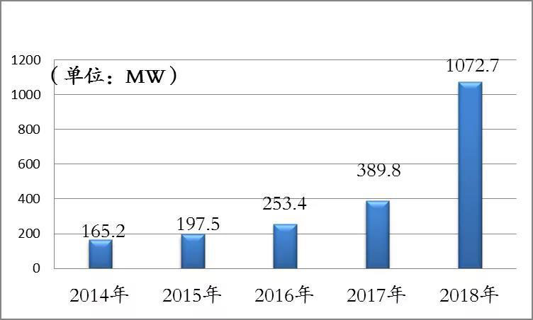 圖四、2014年以來國內(nèi)電化學(xué)儲能裝機增長情況