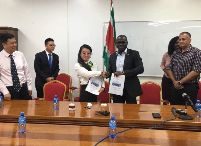 中國儲能網(wǎng)訊:蘇里南當?shù)貢r間2019年09月13日中午12點整,公司與蘇里南自然資源部簽訂蘇里南胡亞巴和皮金斯萊村微電網(wǎng)光伏(一期)項目總承包合同。中國駐蘇里南大使劉全、中國駐蘇里南商務參贊陳宗偉,與蘇里南本國相關主流媒體共同見證簽約儀式。