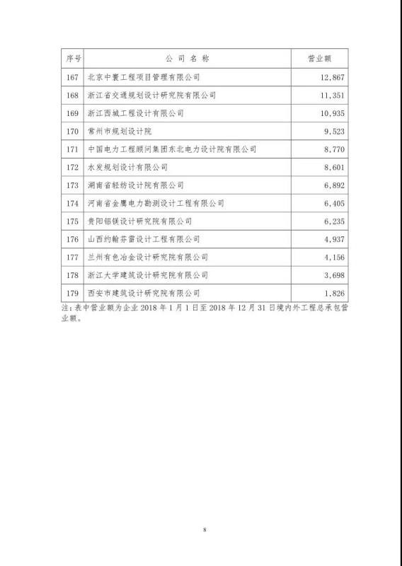 根據(jù)相關(guān)數(shù)據(jù),對電力設(shè)計院排名進行了摘錄,表中營業(yè)額為企業(yè)2018年1月1日至2018年12月31日境內(nèi)外工程總承包營業(yè)額,序號為原表的全行業(yè)累加排序,僅供參考。詳情如下: