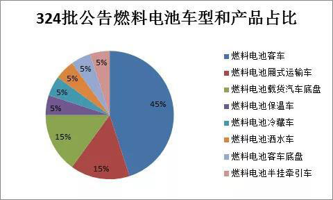 從車型來看,燃料電池客車依然是重頭戲,多元化趨勢顯現(xiàn)。據統(tǒng)計,參與申報第324批次的20款燃料電池車型產品中,燃料電池客車數(shù)量最多,達到9輛;3輛燃料電池廂式運輸車和3款燃料電池載貨汽車底盤位居第二,此外還有其它還有燃料電池保溫車、燃料電池冷藏車、燃料電池灑水車、燃料電池客車底盤、燃料電池半掛牽引車均為1款。