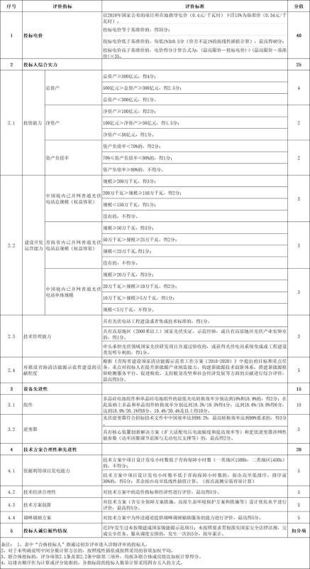 從招標(biāo)文件可以看到,與領(lǐng)跑者類似,此次評價指標(biāo)共分為投標(biāo)電價(40分)、投標(biāo)人綜合實力(25分)、設(shè)備先進(jìn)性(15分)、技術(shù)方案合理性和先進(jìn)性(20分)四個項目以及一個扣分項投標(biāo)人誠信履約情況。