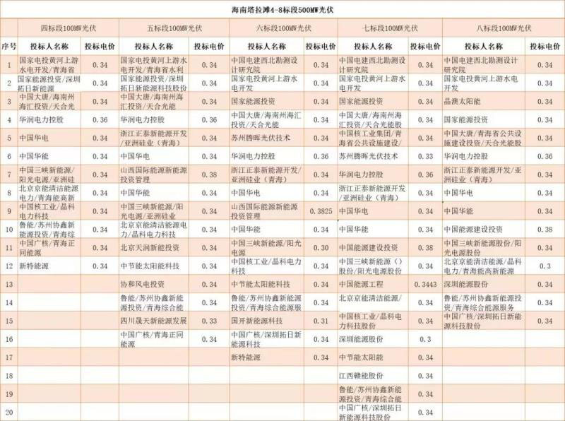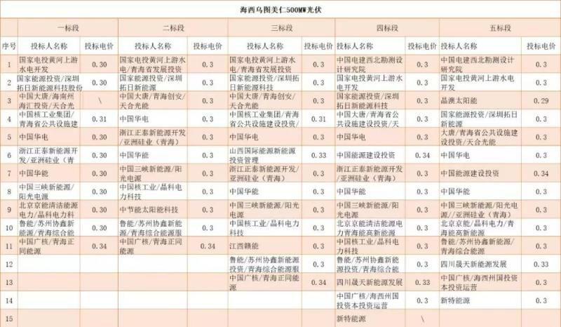 根據(jù)投標(biāo)電價得分標(biāo)準(zhǔn),海西州、海南州的滿分電價分別為0.3、0.34元/千瓦時。從各企業(yè)的開標(biāo)價格看,約80%企業(yè)的申報電價是卡著滿分電價投標(biāo)的,這可以明顯看出,各投資企業(yè)對該基地“勢在必得”的決心。當(dāng)然也有少量企業(yè)報了比滿分電價還低的價格——這既無法增加客觀分?jǐn)?shù),也無法博得眼球。