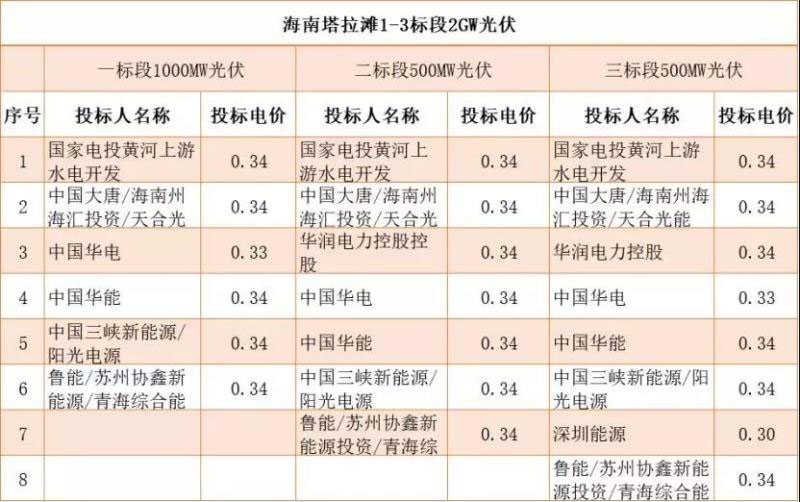 其余的約1GW光伏,或?qū)⒈蝗龒{新能源&陽光電源、魯能新能源&協(xié)鑫、中廣核新能源、中核集團(tuán)&晶科、華能、大唐、正泰新能源、國能投等不足十家企業(yè)/聯(lián)合體瓜分。