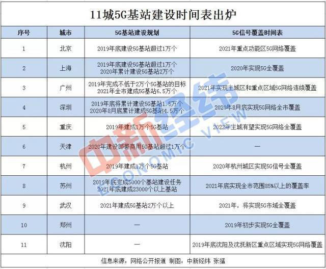 “5G”的腳步真的越來越近了,據(jù)中新經(jīng)緯客戶端不完全統(tǒng)計(jì),北京、上海、廣州、深圳、重慶、天津、杭州、蘇州、武漢、鄭州、沈陽等11城5G基站建設(shè)時(shí)間表出爐。