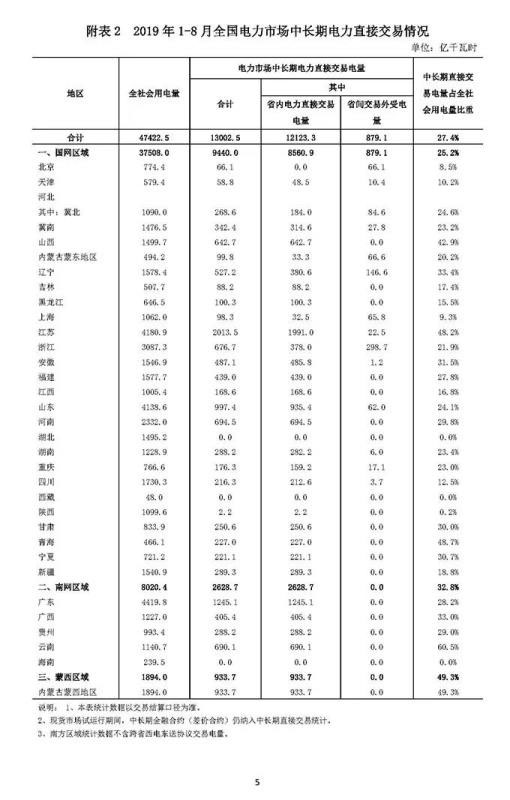(1) 指符合市場(chǎng)準(zhǔn)入條件的電廠和終端購(gòu)電主體通過(guò)自主協(xié)商、集中競(jìng)價(jià)等直接交易形式確定的電量規(guī)模,包括省內(nèi)電力直接交易電量和省間電力直接交易(外受)電量。以交易的結(jié)算口徑統(tǒng)計(jì)。