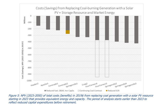 該報(bào)告調(diào)查了該州為消費(fèi)者提供電力的6家燃煤發(fā)電廠的11個(gè)燃煤發(fā)電機(jī)組的運(yùn)營(yíng)情況,得出了這個(gè)結(jié)論:假設(shè)到亞利桑那州2023年將所有燃煤發(fā)電機(jī)組全部更換為太陽能+儲(chǔ)能項(xiàng)目,可以為該州消費(fèi)者節(jié)省35億美元,如果考慮減少溫室氣體排放產(chǎn)生的社會(huì)效益,估計(jì)將超過100億美元。