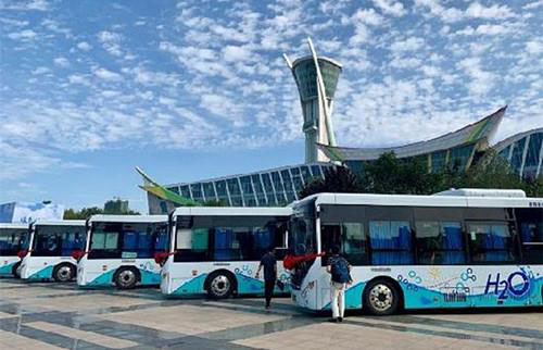 圖為:濰坊打造“氫能城市” 30輛氫燃料電池公交車正式批量運營