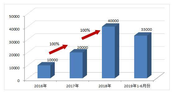 2016-2019年上半年格林美前驅(qū)體出貨量 單位/噸