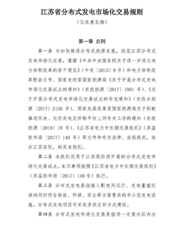 中國(guó)儲(chǔ)能網(wǎng)訊: 近日,江蘇省發(fā)布了《江蘇省分布式發(fā)電市場(chǎng)化交易規(guī)則》(征求意見(jiàn)稿)。根據(jù)文件: