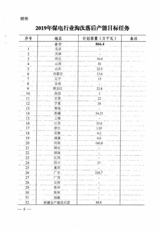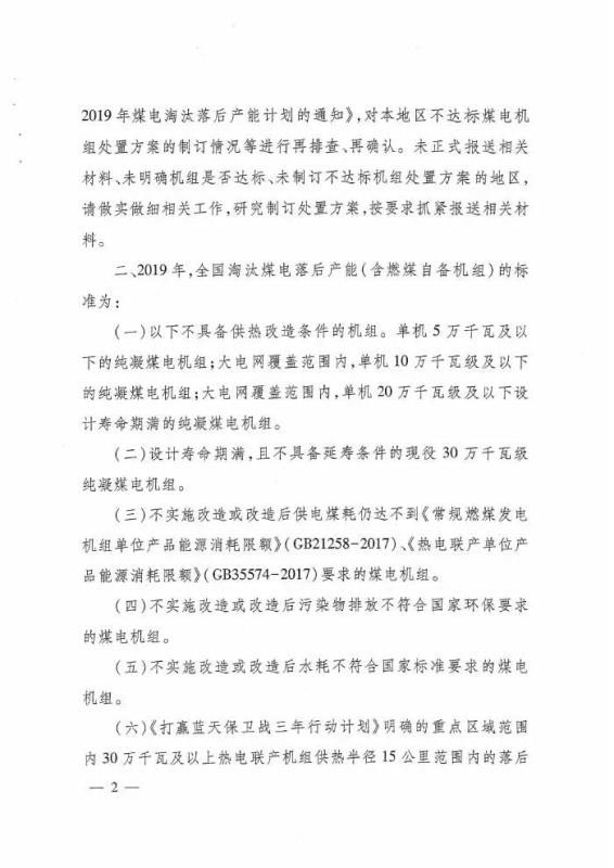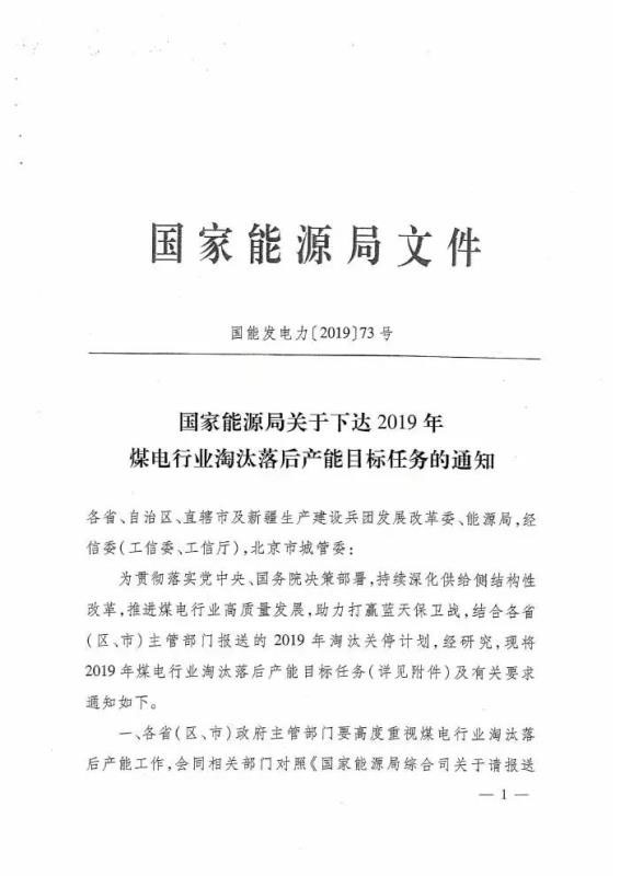 國家能源局關(guān)于下達(dá)2019年煤電行業(yè)淘汰落后產(chǎn)能目標(biāo)任務(wù)的通知