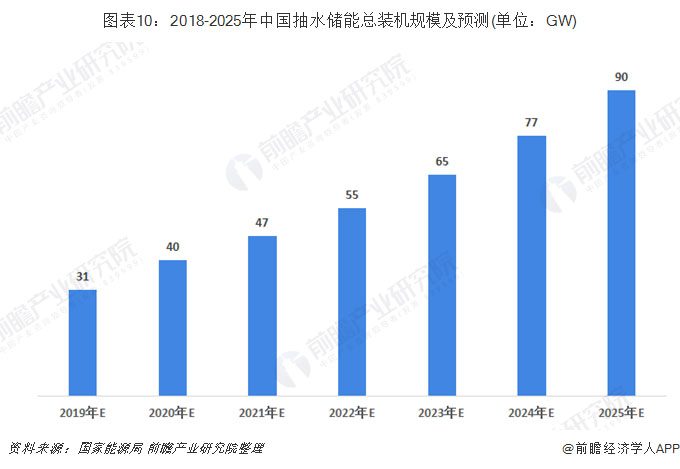 截至2018年底,中國已投運(yùn)的抽水蓄能的裝機(jī)規(guī)模為29.99GW,在建規(guī)模44.00GW,根據(jù)國家能源局發(fā)布的《水電發(fā)展“十三五”規(guī)劃》,到2020年底,我國抽水蓄能的累計(jì)裝機(jī)規(guī)模達(dá)到40GW,2025年將達(dá)到90GW。