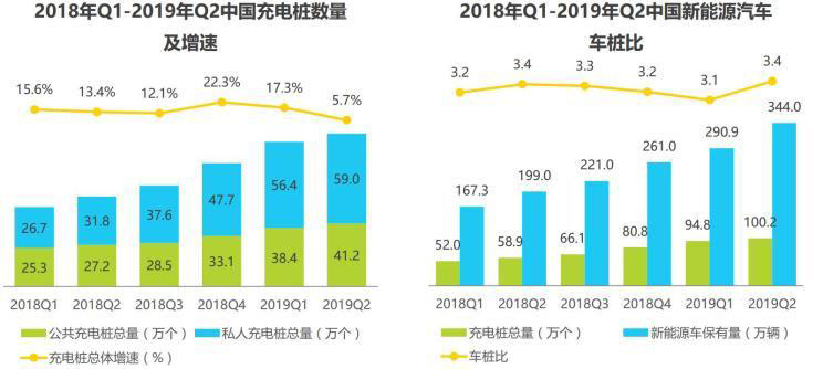 據(jù)艾瑞咨詢的統(tǒng)計數(shù)據(jù)顯示,截至2019年6月份,全國正在運營的充電樁數(shù)量已經(jīng)超過100萬個,其中公共充電樁為41.2萬個,私人充電樁為59萬個。與此同時,中國新能源汽車保有量則達到344萬輛,新能源汽車車樁比為3.4,這意味著3.4輛新能源汽車將爭搶一個充電樁。