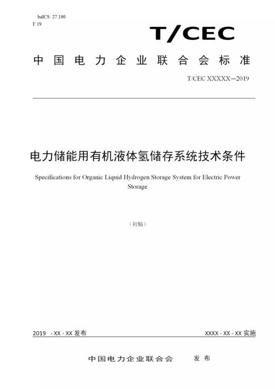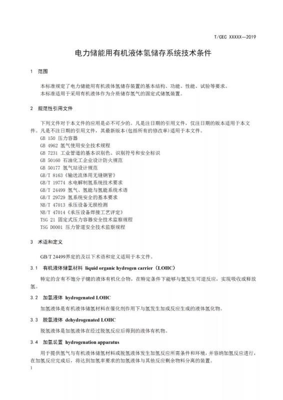 《電力儲能用有機(jī)液體氫儲存系統(tǒng)技術(shù)條件》標(biāo)準(zhǔn)征求意見稿