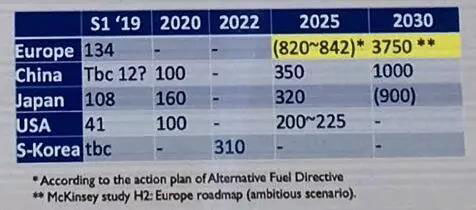 關(guān)于未來全球加氫站的數(shù)量和分布,巴特·比耶比克援引麥肯錫的預(yù)測稱,2025年之后,歐洲的加氫站數(shù)量將遠(yuǎn)多于中國、美國和日本。到2030年,歐洲的加氫站數(shù)量將達(dá)到3750座。
