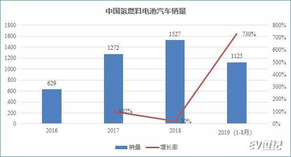 上汽集團(tuán)副總裁、總工程師祖似杰提供的數(shù)據(jù)顯示,過去三年,中國的氫燃料電池汽車銷量分別是629輛、1272輛和1527輛,今年前8個(gè)月銷量為1125輛。