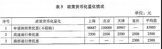 以典型城市為對(duì)象,定量分析支持政策的貨幣化收益,評(píng)價(jià)政策工具的承接力度,進(jìn)而總體評(píng)估判斷行業(yè)發(fā)展所需的支持政策。按照政策類(lèi)型劃分,我們?cè)O(shè)定不同的政策貨幣化模型。我們可以統(tǒng)一設(shè)置貨幣化模型,對(duì)不同支持政策其中,申請(qǐng)牌照費(fèi)優(yōu)惠、路橋通行費(fèi)優(yōu)惠、路權(quán)便利特權(quán)三項(xiàng)政策的貨幣化收益量化分析,參考崔洪陽(yáng)、何卉、金伶芝、劉金周發(fā)表于2018年《新能源汽車(chē)藍(lán)皮書(shū)》中的《地方性新能源乘用車(chē)激勵(lì)政策量化評(píng)估》。的貨幣化收益進(jìn)行量化,將貨幣化收益量化模型設(shè)定為: