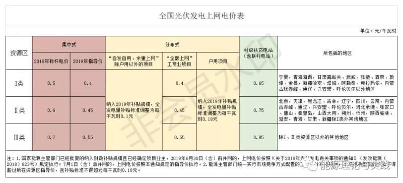 2019年4月28日,《國家發(fā)展改革委關(guān)于完善光伏發(fā)電上網(wǎng)電價(jià)機(jī)制有關(guān)問題的通知》(發(fā)改價(jià)格〔2019〕761號(hào)),將集中式光伏電站標(biāo)桿上網(wǎng)電價(jià)改為指導(dǎo)價(jià),新增集中式光伏電站上網(wǎng)電價(jià)原則上通過市場(chǎng)競(jìng)爭(zhēng)方式確定,不得超過所在資源區(qū)指導(dǎo)價(jià)。能源主管部門統(tǒng)一實(shí)行市場(chǎng)競(jìng)爭(zhēng)方式配置的工商業(yè)分布式項(xiàng)目,市場(chǎng)競(jìng)爭(zhēng)形成的價(jià)格不得超過所在資源區(qū)指導(dǎo)價(jià),且補(bǔ)貼標(biāo)準(zhǔn)不得超過每千瓦時(shí)0.10元。