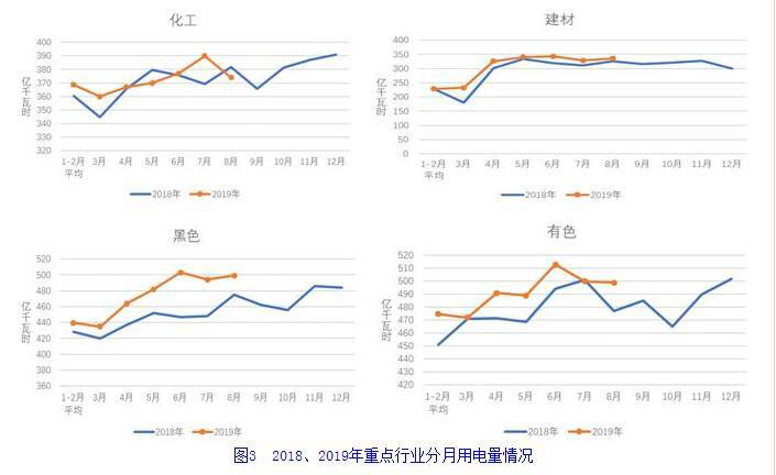 8月份,四大高載能行業(yè)用電量合計(jì)1708億千瓦時(shí),同比增長2.0%,增速比上年同期回落5.4個(gè)百分點(diǎn),占全社會(huì)用電量的比重為25.2%。其中,化工行業(yè)用電量374億千瓦時(shí),同比下降2.0%,增速比上年同期回落5.2個(gè)百分點(diǎn);建材行業(yè)用電量336億千瓦時(shí),同比增長3.1%,增速比上年同期回落3.0個(gè)百分點(diǎn);黑色金屬冶煉行業(yè)用電量499億千瓦時(shí),同比增長4.9%,增速比上年同期回落9.1個(gè)百分點(diǎn);有色金屬冶煉行業(yè)499億千瓦時(shí),同比增長1.5%,增速比上年同期回落4.2個(gè)百分點(diǎn)。