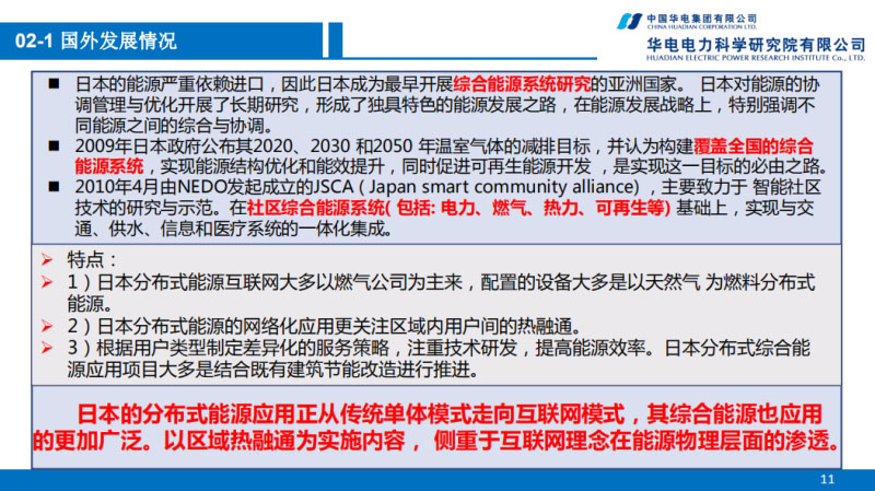 日本是亞洲做綜合能源比較早,受資源的限制,重點主要是在分布式能源和社區(qū)的綜合能源系統(tǒng),他們在2009年提出了2020、2030、2050年階段性的節(jié)能減排目標,他們現(xiàn)在逐漸向分布式能源+互聯(lián)網的理念逐漸滲透。