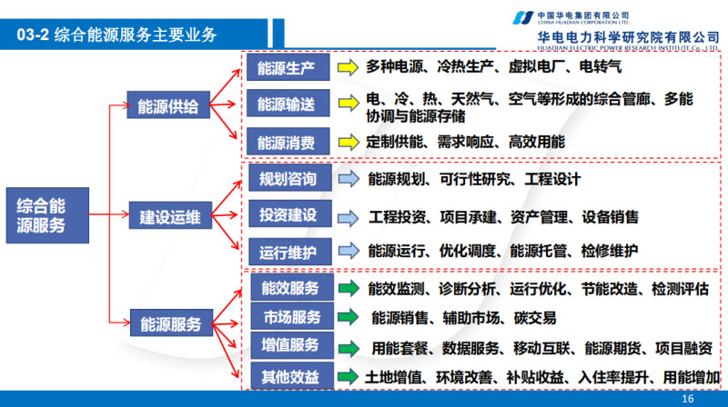 業(yè)務方面,綜合能源的業(yè)務很多,主要是在能源的供給層和建設運維、能源服務,當然還有一些能源托管、項目資產管理、能源定制等新理念。能源的服務方面有能效的服務、市場的服務、增值服務還有其他的效益,能不能提高入住率,改善用戶的品質,可以促使用戶的運能的增加,改善效益,環(huán)境能不能進行提升。節(jié)能服務也是很重要的一塊。