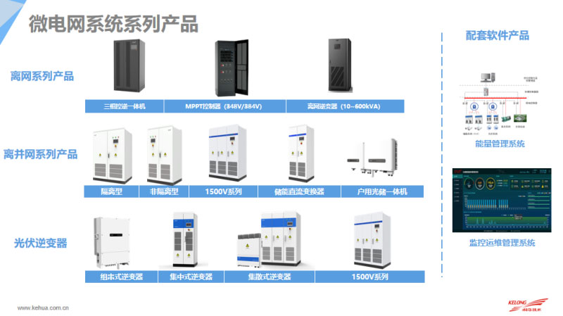 光伏系列的產(chǎn)品,目前科華恒盛的光伏系列產(chǎn)品比較豐富,組串集中到集散到1500伏的產(chǎn)品系列都有提供。我們依托于配套軟件系統(tǒng),EMS系統(tǒng)是科華自主研發(fā),應(yīng)用于海外的微網(wǎng)系統(tǒng)中。