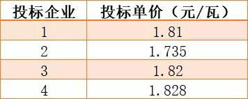 據(jù)光伏們了解,315W標(biāo)段經(jīng)過商務(wù)標(biāo)和技術(shù)標(biāo)的評審之后,一共四家企業(yè)通過并參與價(jià)格標(biāo)的開標(biāo),開標(biāo)情況如下表: