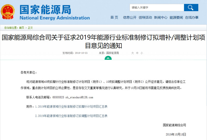 中國(guó)儲(chǔ)能網(wǎng)訊:今日,記者從國(guó)家能源局了解到,國(guó)家能源局綜合司發(fā)布《關(guān)于征求2019年能源行業(yè)標(biāo)準(zhǔn)制修訂擬增補(bǔ)/調(diào)整計(jì)劃項(xiàng)目意見的通知》(以下簡(jiǎn)稱“通知”》,該通知對(duì)現(xiàn)對(duì)能源領(lǐng)域48項(xiàng)擬增補(bǔ)行業(yè)標(biāo)準(zhǔn)制修訂計(jì)劃項(xiàng)目和10項(xiàng)擬調(diào)整計(jì)劃項(xiàng)目公開征求意見。