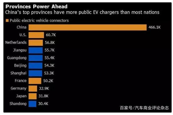 中國在全國范圍里推廣電動車也意味著一些省份的充電樁數(shù)量甚至超過了其他國家全國的規(guī)模。