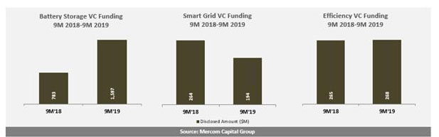 整體而言,1-9月,電池存儲,智能電網(wǎng)和能源效率行業(yè)的企業(yè)融資總規(guī)模(包括風(fēng)險投資資金,公共市場和債務(wù)融資)為27億美元,較之去年同期的33億美元下降18.2%。