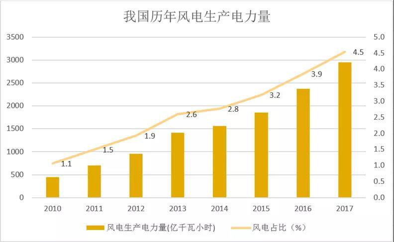 風(fēng)電在我國(guó)的能源結(jié)構(gòu)中越來越重要,盡管占比還較低,但是每年都在逐漸增長(zhǎng)。風(fēng)電電力生產(chǎn)量占全部電力生產(chǎn)量從2010年的1.1%增長(zhǎng)到了2017年的4.5%。國(guó)發(fā)能研院、綠能智庫認(rèn)為,在可預(yù)見的將來,隨著裝機(jī)規(guī)模的上升和度電成本的下降,風(fēng)電在我國(guó)未來的電力生產(chǎn)中的地位將繼續(xù)上升。