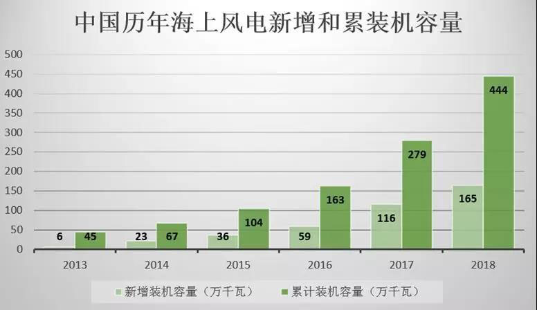 2108年下半年以來,中國(guó)海上風(fēng)電發(fā)展逐漸提速。2018年新增裝機(jī)436天,新增裝機(jī)容量達(dá)到165.5萬千瓦,同比增長(zhǎng)42.7%;累計(jì)裝機(jī)達(dá)到了444.5萬千瓦。其中,江蘇新增海上風(fēng)電裝機(jī)容量達(dá)到95.8萬千瓦,占全國(guó)新增裝機(jī)容量的57.9%。今年1-9月,海上風(fēng)電新增并網(wǎng)容量為106萬千瓦。李創(chuàng)軍表示,產(chǎn)業(yè)發(fā)展總體平穩(wěn)有序,預(yù)計(jì)可以實(shí)現(xiàn)到2020年累計(jì)并網(wǎng)容量達(dá)到500萬千瓦的規(guī)劃目標(biāo)。
