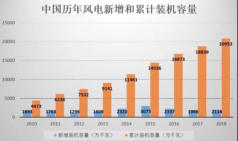 從2010年以來中國(guó)風(fēng)電裝機(jī)容量保持穩(wěn)步增長(zhǎng),2018年年底已經(jīng)累計(jì)達(dá)到2.1億千瓦。中國(guó)循環(huán)經(jīng)濟(jì)協(xié)會(huì)可再生能源專業(yè)委員會(huì)名譽(yù)主任委員李俊峰表示,現(xiàn)在沒有其他的能源和風(fēng)電和太陽能競(jìng)爭(zhēng),雖然它的比重很小,但是它每年的新增規(guī)模在全球已經(jīng)排在了首位。這兩個(gè)加起來每年差不多超過了1億千瓦,占全部新增裝機(jī)的60%以上。在中國(guó)也是如此,風(fēng)電和太陽能兩個(gè)加起來,每年都會(huì)超過6000到7000萬千瓦,在新增裝機(jī)里面超過了60%。風(fēng)電推動(dòng)著中國(guó)能源轉(zhuǎn)型,為未來的高質(zhì)量發(fā)展注入了新的活力。