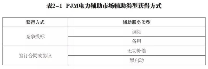 PJM定義的不同輔助服務(wù)類型的獲取方式如表所示: