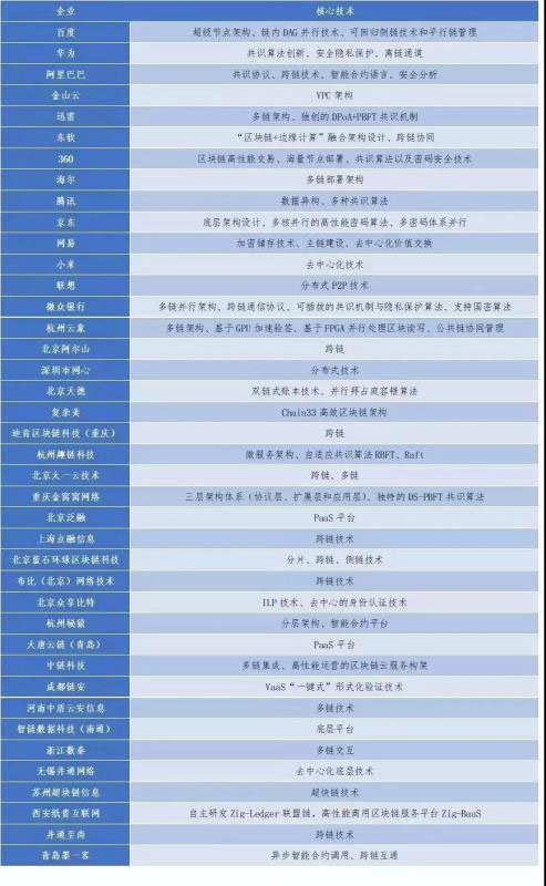 ▲國(guó)內(nèi)區(qū)塊鏈重點(diǎn)企業(yè)核心技術(shù)一覽表