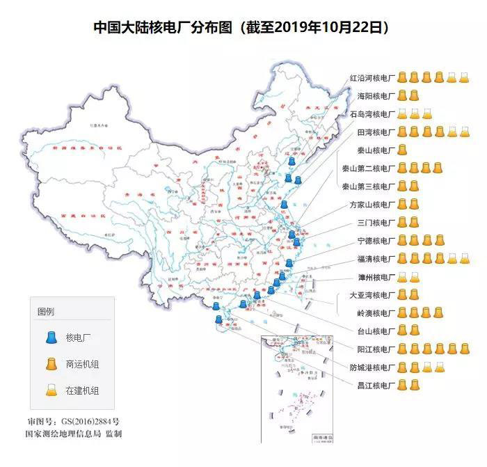 中國儲能網(wǎng)訊:日前,國家核安全局更新了中國大陸核電廠分布圖(截至2019年10月22日)。