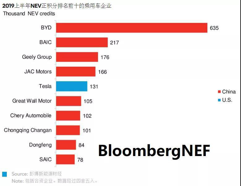 今年 NEV積分目標將超額完成。自2019年1月雙積分政策生效以來,BNEF估計車企通過銷售新能源汽車已產(chǎn)生240萬NEV積分,遠超85.5萬的NEV積分考核目標。2019年新能源汽車銷量在新車銷量的占比達約3.5%就能達成年度NEV積分目標,而上半年新能源汽車的銷量占比達6%。