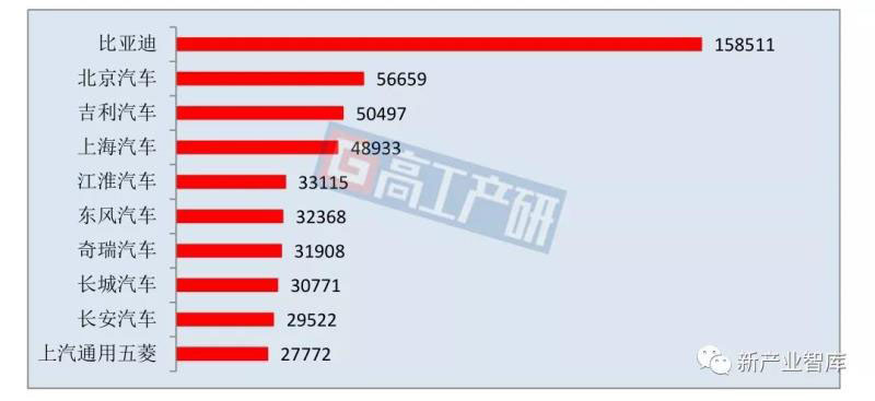 2019年前三季度我國新能源汽車上牌量TOP10企業(yè)(輛)