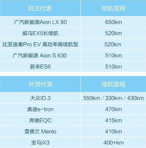 就續(xù)航里程這一指標(biāo)而言,外資車(chē)企卻普遍落后。