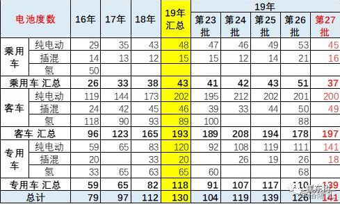 2019年27批純電動(dòng)專用車的裝載量達(dá)到141度,也是高于18年80度的帶電量的。由于目前專用車主要是車型重量的放寬,因此大型化的效果較好。,