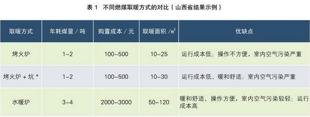 不同燃煤取暖方式的對比(山西省結(jié)果示例)資料來源:北方典型地區(qū)農(nóng)村居民冬季取暖研究報告