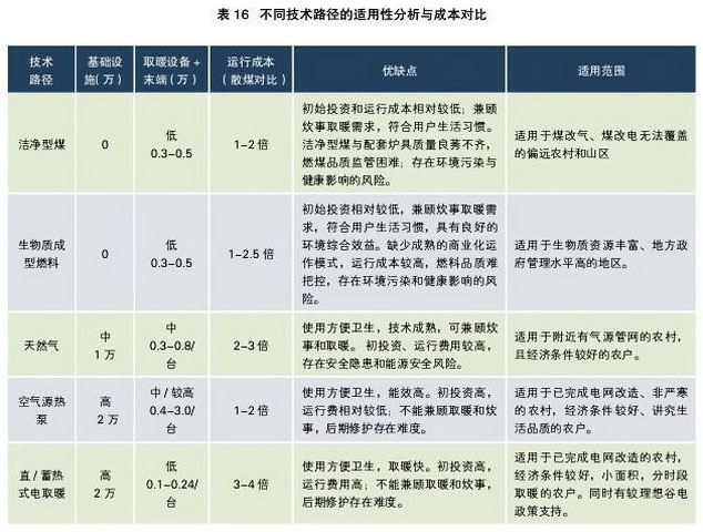 不同清潔取暖技術(shù)路徑的適用性分析與成本對比。資料來源:北方典型地區(qū)農(nóng)村居民冬季取暖研究報告